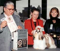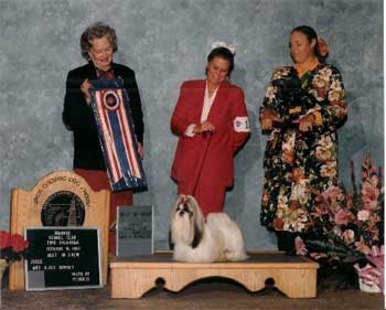 Colorado was one of those special show dogs that does not come along very often. He was the show dog that gave 100% every time he went into the ring. "Colorado" was shown back east by his co-breeder, Eileen Nicholas, and then returned to Texas and continued to show off what a "Cool" dog he was!! "Colorado" not only won a Best In Show, but multiple groups and specialties in his show career.